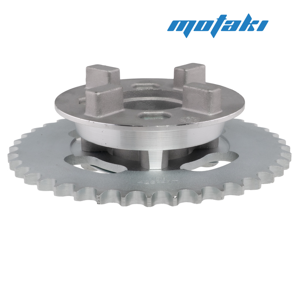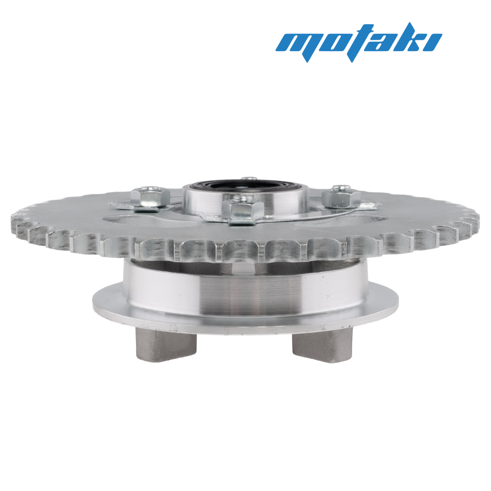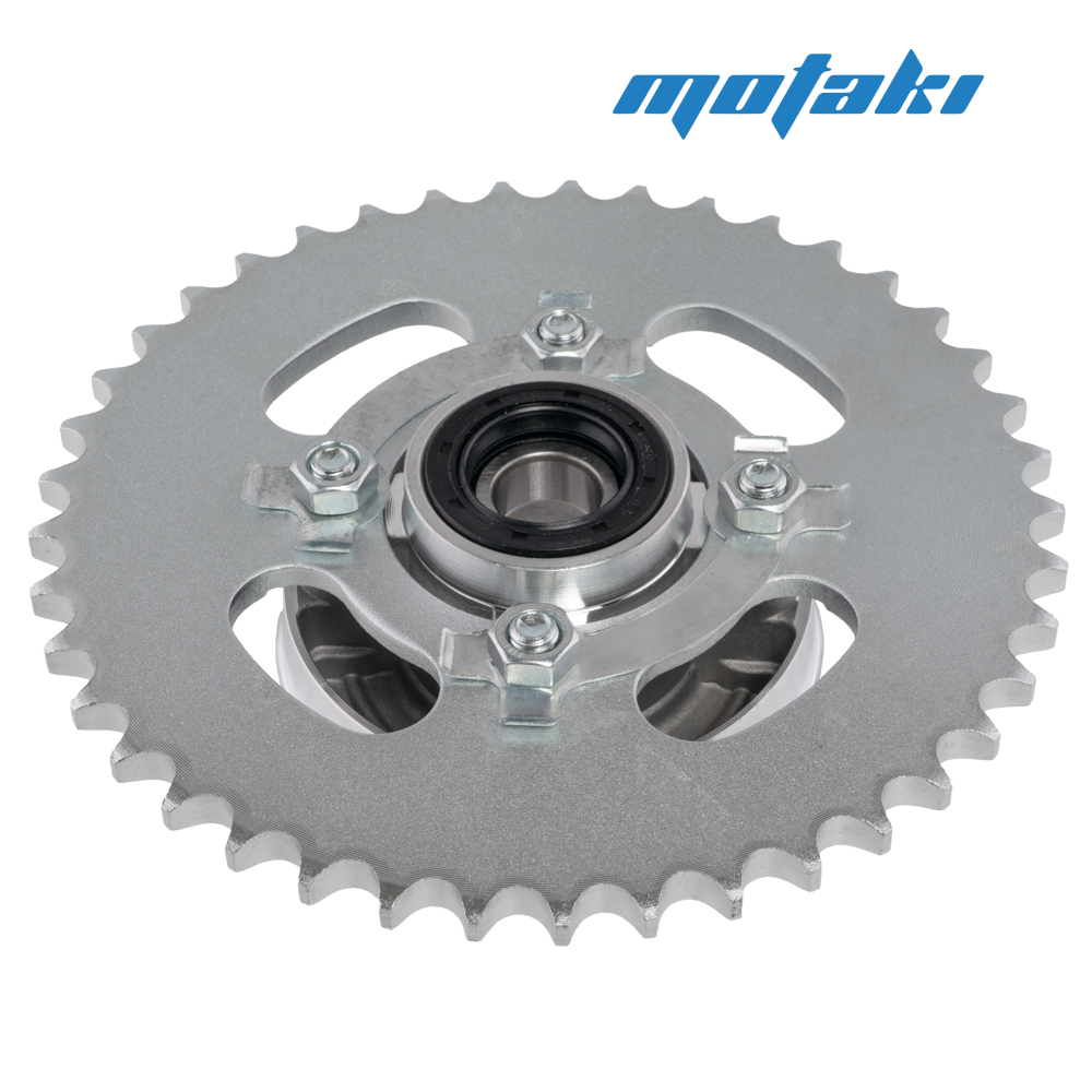 Ведомая (задняя) звезда со ступицей, подшипником, сальником, болтами, пластинами для мопеда Alpha, Delta и аналогичной мототехники.