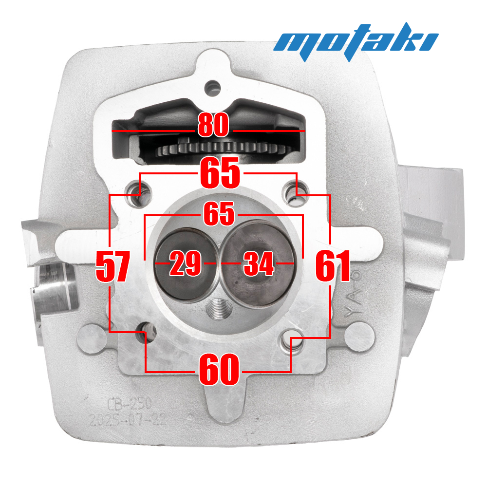 Головка блока цилиндра (ГБЦ) для китайских мотоциклов типа CB250, TTR250 (верхнее расположение распредвала) с двигателями 165FMM, 166FMM и УВЕЛИЧЕННЫМИ КЛАПАНАМИ.