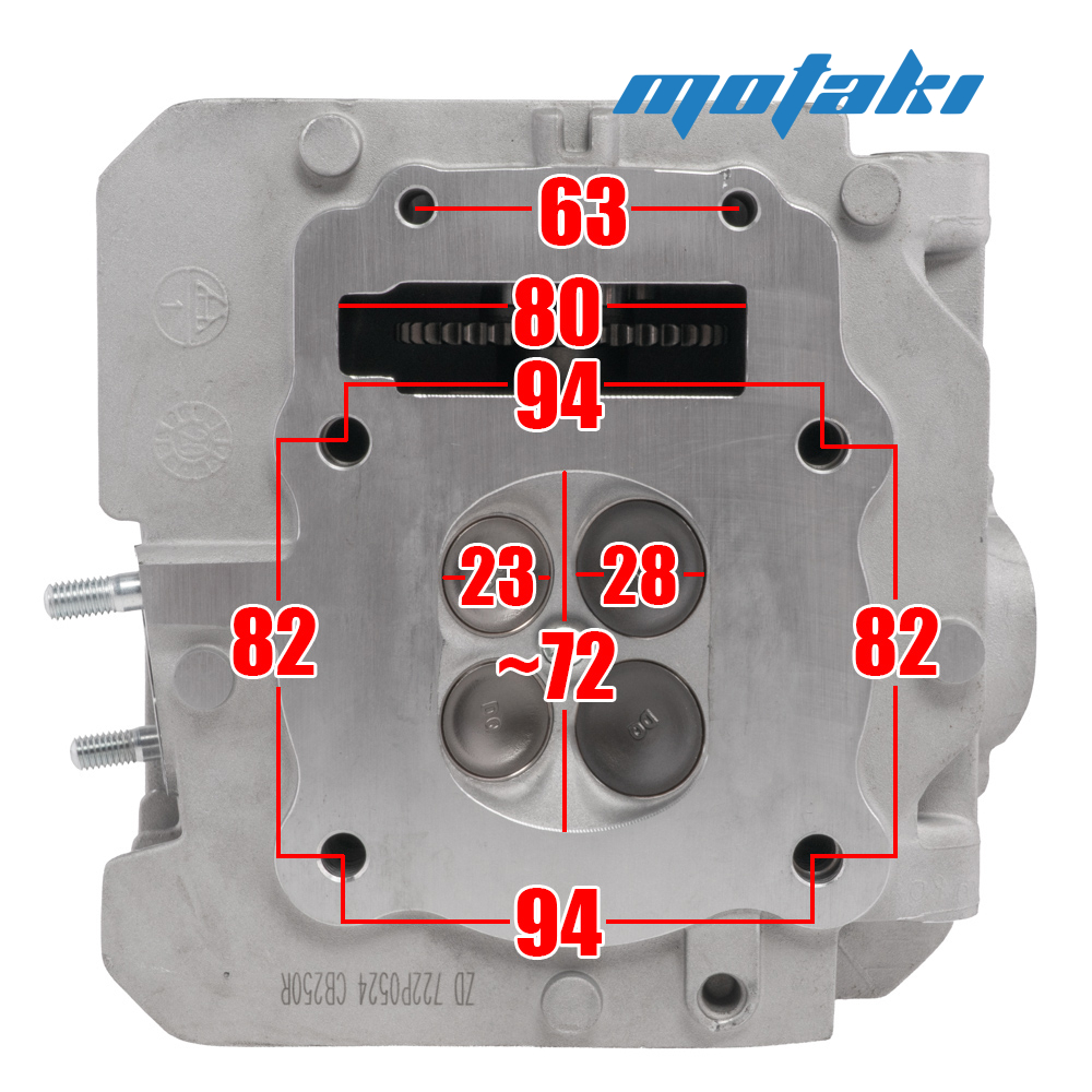 Диаметр шляпок клапанов (V): 2 шт. впуск 28 мм, 2 шт. выпуск 23 мм.