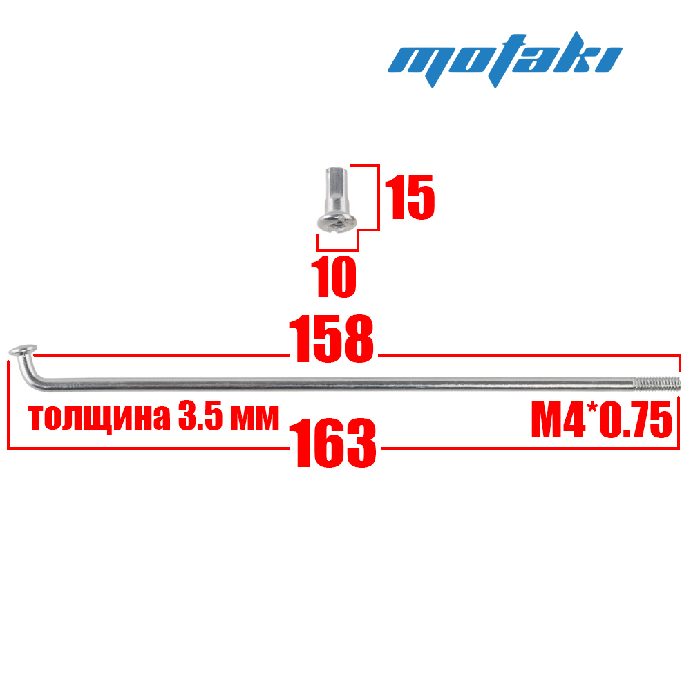 Размер: все спицы в комплекте одной длины, по международной классификации от края до основания шляпки ~158 мм, от края до края ~163 мм.