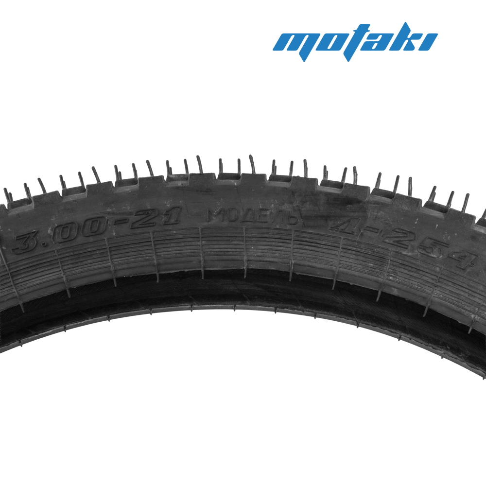 Покрышка (шина) Петрошина Л-254 для внедорожных мотоциклов и соревнований по мотокроссу. Рисунок протектора шины для переднего колеса кроссовых мотоциклов представляет собой комбинацию редких прямоугольных шашек, выполненных в виде усечённых пирамид и расположенных чёткими рядами в окружном направлении. Для повышения боковой устойчивости шины крайние шашки соединены сплошным ребром.