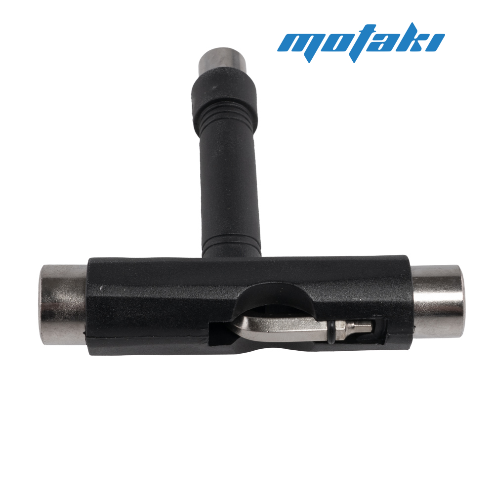 Инструмент Т-образный ключ для скейтборда, лонгборда, круизера, велосипеда с дополнительной вложенной в ручку Г-образной крестовой отвёрткой и шестигранником 3 мм.