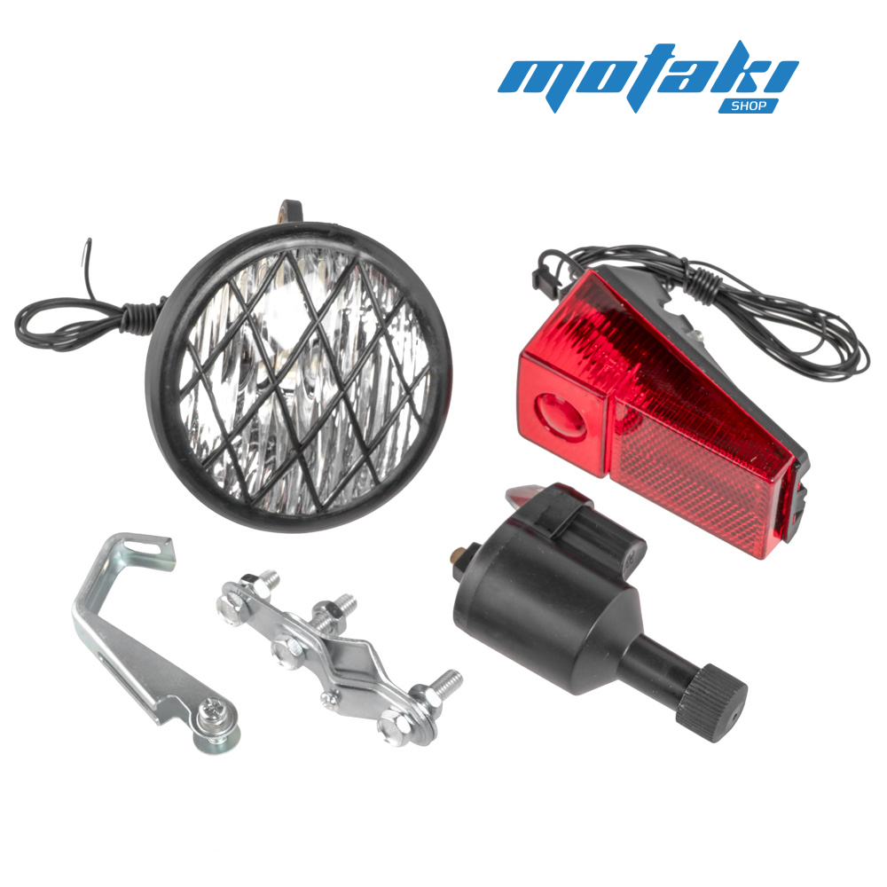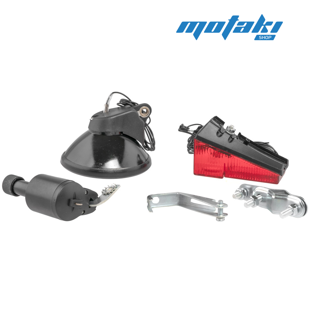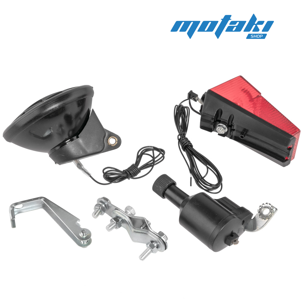 Комплект: фара, динамка, крепление, задний фонарь - стоп-сигнал.
